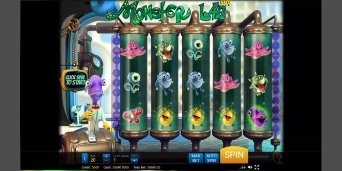 Monster Lab — это слот-автомат, созданный для любителей оригинальных игровых решений. Его основной темой является таинственная лаборатория монстров, где игрокам предстоит проводить «эксперименты», вращая барабаны. Красочная графика, звуковое сопровождение и динамичные бонусные раунды мгновенно захватывают дух и погружают в атмосферу игры.